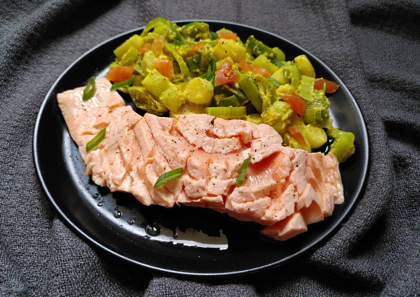 Fondue de poireaux aux deux saumons